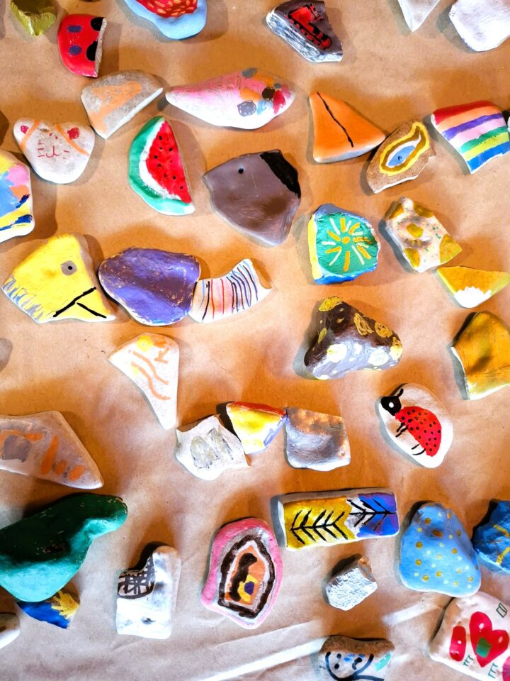 Stage où émerge une création artistique pluridisciplinaire réalisée avec les enfants, à travers l’art du corps en mouvement et l’exploration plastique des matières, des couleurs,
