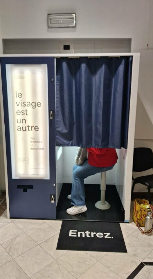 NB : Cette installation s’adresse à un public de 12 ans et plus. Les portraits témoignent des violences systémiques envers les femmes. Nous pouvons mettre en place des actions de sensibilisation autour du projet pour accompagner des groupes scolaires. L’usage de cette cabine par les personnes mineures doit se faire avec l’accord d’un adulte responsable, en raison du dispositif qui génère une photo de la personne à destination de l’exposition participative.
